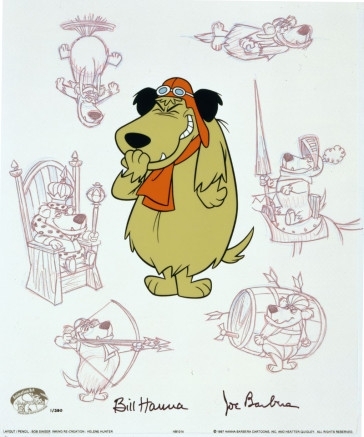 This is a hand painted limited edition animation cel. Featuring Muttley. Wake up there, Muttley, you're dreaming again! You're not Robin Hood and you're not Gunga Din. You're not a brave knight or a king that's been crowned. You're just plain old Muttley, the snickering hound! Veteran Hanna-Barbera artist Bob Singer created the layout for Muttley Persona, the first solo appearance in a Limited Edition for the olive-green pooch who, along with his co-hort dick Dastardly, debuted in the 1968 cartoon "Wacky Races". The following summer, the pair accepted their own series, "Dastardly and Muttley in their Flying Machines", in which their mission was to "stop that pigeon!" Each Muttley Persona is signed by the founders of Hollywood's oldest cartoon studio, William Hanna and Joseph Barbera. 850