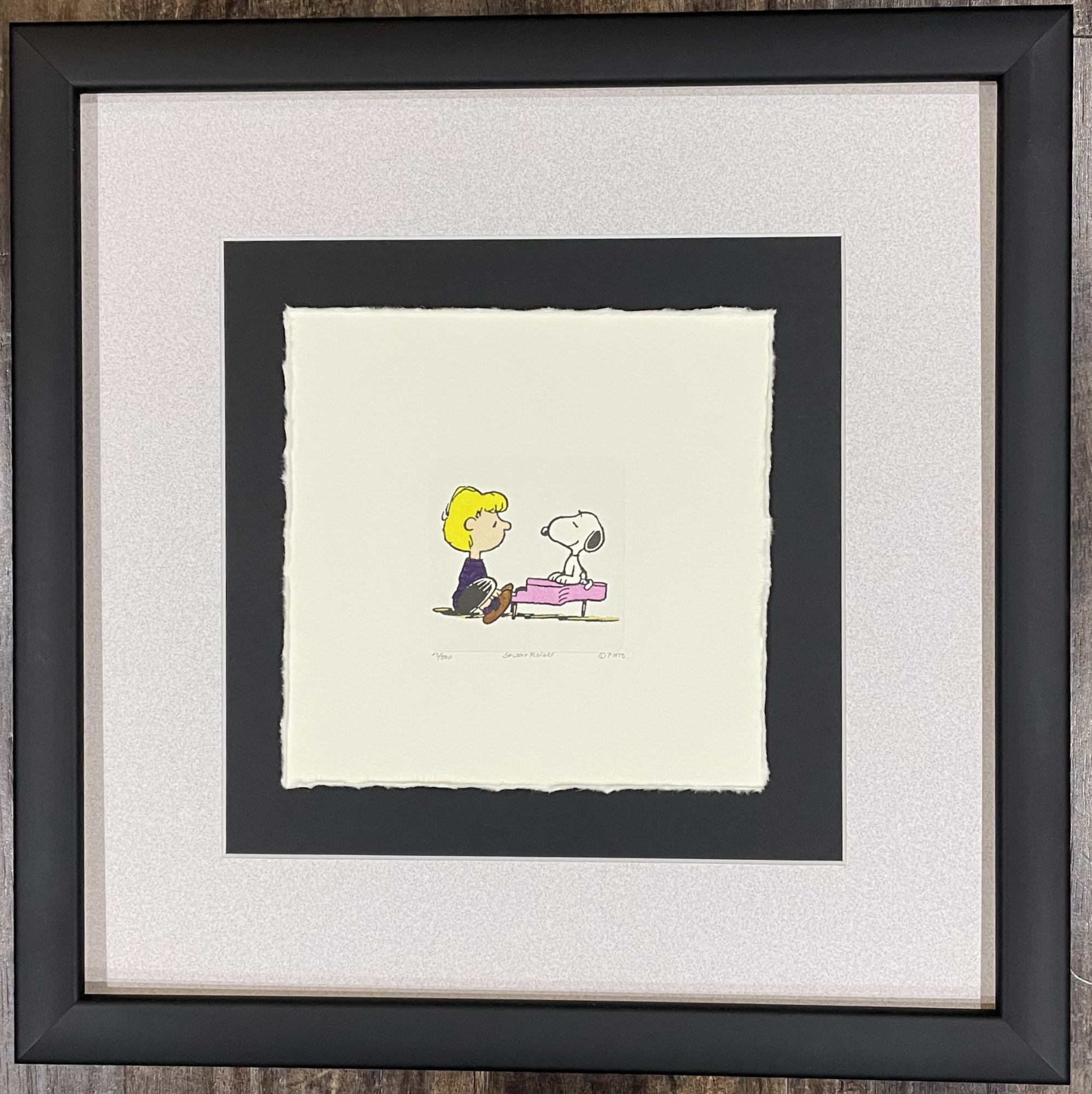 A classic Peanuts animation art moment! Featured here is Snoopy and Schroeder. Available unframed for only $75US!