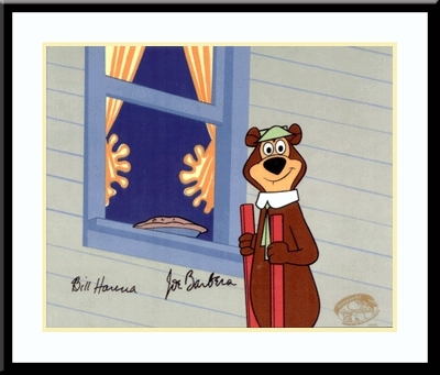 This is a hand painted limited edition cel featuring Yogi Bear. This is signed by Bill Hanna and Joe Barbera.525