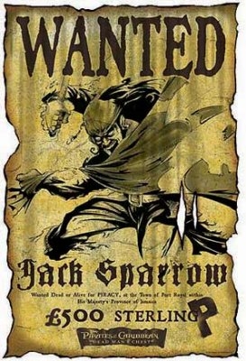 Based on the film "Pirates of the Caribbean: Dead Man's Chest", this limited edition giclee on distressed paper features Jack Sparrow in full villainous action, wanted Dead or Alive for piracy.