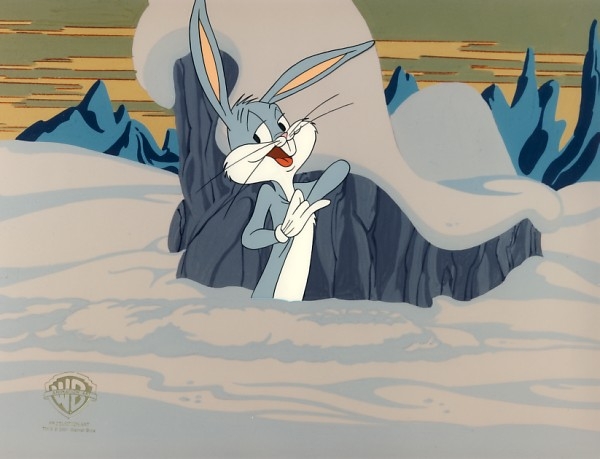 This is an original hand painted production cel. Featuring Bugs Bunny. SOLD CALL FOR SIMILAR IMAGE.