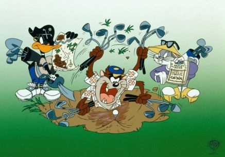 Taz, Bugs Bunny and Daffy Duck have a fun time golfing...well trying to golf! This is a limited edition serigraph cel.