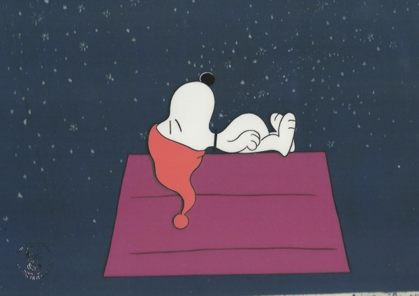 This is an original animation art production cel with matching drawing. Used in making The Peanuts cartoon "What a Nightmare Charlie Brown". Feburary 23, 1978. Featured here is Snoopy. If drawing is also framed there is an additional $125. SOLD CALL FOR SIMILAR IMAGES.