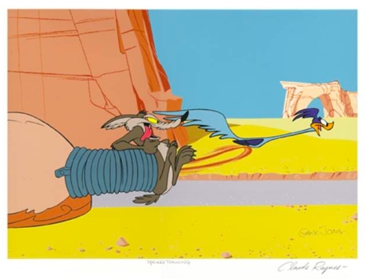 This is a limited edition serigraph on paper. Featuring Wile E. Coyote and Road Runner. In 1994 Chuck Jones produced and directed the first Wile E. Coyote and Road Runner short film in over 30 years, Chariots of Fur. As it turned it out, it was also the last one starring those characters created by the man who gave them life in 1949.