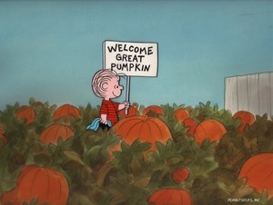 From 'It's the Great Pumpkin, Charlie Brown' (1966) Linus prepares to spend yet another Halloween Night waiting in the pumpkin patch in this hand-painted limited edition cel.