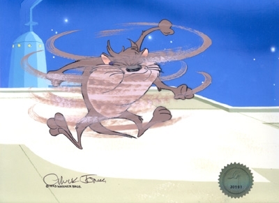This is an original hand painted production cel featuring Taz. This is signed by the late Chuck Jones.1025