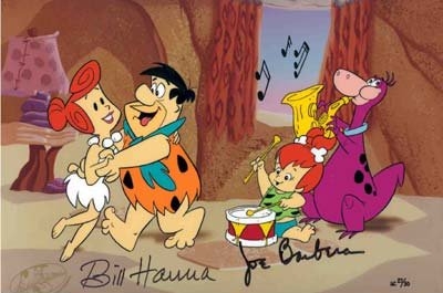 Fred and Wilma dance to the beat of Pebbles & Dino in this signed limited edition cel.