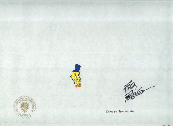 This is an original hand painted production cel of Tweety. Signed by the late Friz Freleng.675
