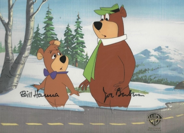 This is an original hand painted production cel from "Yogi The Easter Bear" 1994. This is signed by the late Bill Hanna & Joe Barbera! SOLD CALL FOR SIMILAR IMAGES.